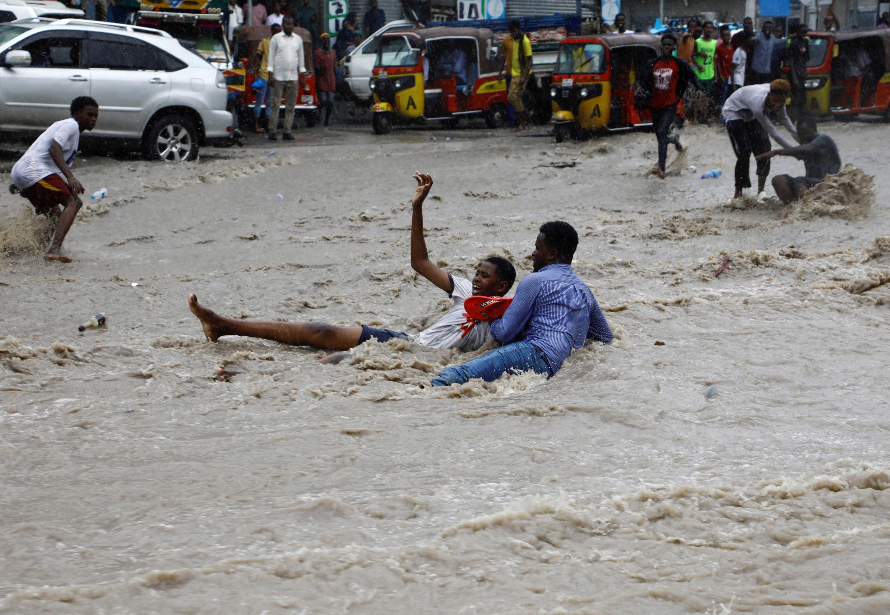 MOGADISHU, Nov 10 (Reuters) - The United Nations has described floods that uprooted hundreds of thousands of people in Somalia and neighbouring countries in East Africa following a historic drought as a once-in-a-century event. Around 1.6 million people in Somalia could be affected by the heavy seasonal downpours, which have been worsened by the combined impact of two climate phenomenons, El Niño and the Indian Ocean Dipole, the UN Office for the Coordination of Humanitarian Affairs (OCHA) said in a statement late on Thursday. The floods, which followed heavy rains that started in early October, have already killed at least 29 people and forced more than 300,000 from their homes in Somalia, and inundated towns and villages across northern Kenya. Camps for people displaced by an Islamist insurgency and the worst drought in four decades have also been flooded, causing people to flee for a second time, aid groups say. Large-scale displacement, increased humanitarian needs and further destruction of property remain likely, OCHA said, with some 1.5 million hectares (3.70 million acres)of farmland potentially being destroyed. "Extreme weather linked to the ongoing El Niño risks further driving up humanitarian needs in already-vulnerable communities in Somalia and many other places," said Martin Griffiths, Under-Secretary-General, the UN's Humanitarian Affairs and Emergency Relief Coordinator. "We know what the risks are, and we need to get ahead of these looming crises," he said. https://www.reuters.com/business/environment/once-in-a-century-flooding-swamps-somalia-after-historic-drought-un-2023-11-10/