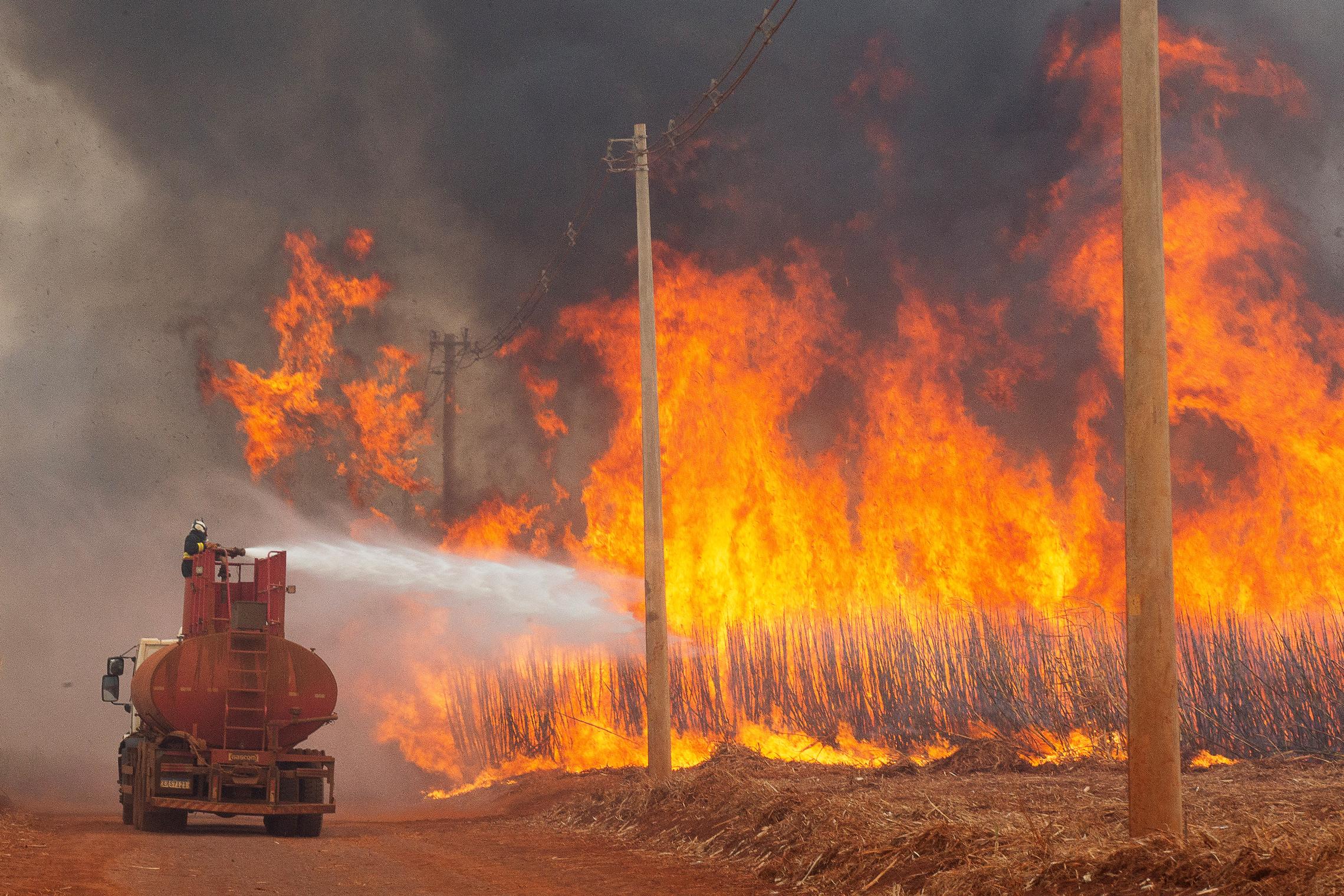 SAO PAULO, Aug 24 (Reuters) - Wildfires blazed through sugarcane fields in northern Sao Paulo state on Saturday, sending up clouds of smoke that covered nearby towns so thoroughly that officials prohibited outdoor sports. A soccer match of the Brazilian championship was canceled due to the ban in Ribeirão Preto, a city in the most critical region in the west of São Paulo state. Some state highways were closed due to reduced visibility. Local television showed images of corpses of cattle that had died in fields from heat and smoke inhalation. "The firefighters are unable to control the flames. We can't do anything," farmer Silvio Dantas, 56, told Reuters, on his field as a column of gray-white smoke rose on the horizon. "The fire has burned plants, destroyed houses and killed cattle. This is very tough," he said, The São Paulo government said 36 cities were on "high alert" due to fires that have spread at the peak of the dry season when fields are parched and temperatures high. "We are chartering planes to spray water in addition to fire department aircraft," said São Paulo Governor Tarcisio de Freitas, who set up an emergency task force to deal with the situation. On Friday, in Urupes, near Ribeirão Preto, two firefighters died while trying to extinguish flames in a sugar mill in an area where 200 hectares of sugar cane plantation were destroyed. Raizen (RAIZ4.SA) , opens new tab, the world's largest sugarcane processor, said operations at one of its plants in Sertaozinho had been halted since Thursday due to fires in the sugarcane fields. In São Paulo, 350 km to the south, Brazil's largest city, smoke filled the sky on Friday, but had cleared on Saturday. Brazil's wildfire season typically peaks in August and September. This year wildfires started unusually early in Pantanal, the world's largest wetlands, in late May, while the number of fires in the Amazon rainforest surged to a two-decade high for the month of July, government data showed. Sign up here. https://www.reuters.com/world/americas/wildfires-rage-sugar-cane-fields-brazils-southeast-2024-08-24/