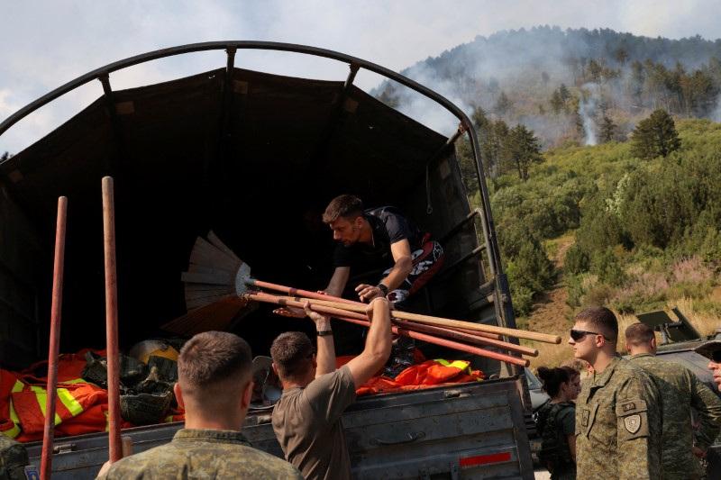 PREVALLE, Kosovo, Aug 15 (Reuters) - As firefighters in southern Kosovo prayed for rain in their battle against wildfires in the Sharr Mountains National Park, a young man on a motor-bike approached them and said: "I am here to help." Allmedin Smaili, 26, a dentist from the nearby town of Prizren, has been helping firefighters for seven days to stop a fire in the park where he and his friends usually go with their motorbikes to enjoy the thrill of riding over the harsh terrain. Two men at the fire department base fill backpack waterbags of 25 liters each and Smaili transports them to other firefighters to use to douse the flames as huge areas of pine trees burn. Most of the time he carries two backpacks with water totalling 50 liters, food and bottles of drinking water. "When I saw what firefighters are going through and how committed they are I told myself I have to do something," Samili said as he prepared to transport more water. On Wednesday, Smaili called three other friends to transport more water as breeze stopped the flames and a U.S. helicopter from the NATO peacekeeping mission in Kosovo started to drop water. The challenge is to stop slow burning trees which can ignite again with a more destructive fire. "To reach the highest point with water on our back we need three hours and the boy (Smaili) was doing it in less than ten minutes," said Flamur Hoti, the firefighters' commander. "We never imagined he could be so helpful." Video from his GoPro camera shows Smaili handing water to his new colleagues as his motorbike sped along trails made by brown bears and wild goats. Steep slopes can be seen from his left and right side through traces of old burned areas which are still visible. Fire trucks can not reach the terrain some 1,900 meters above the sea level. "Cross motor-bike is a hobby for me but this week in turned into a real job," he said, smiling. "When I see the impact, it gives me pleasure and I never got tired during these days." Sign up here. https://www.reuters.com/business/environment/kosovo-man-braves-wildfires-motorbike-deliver-water-firefighters-2024-08-15/