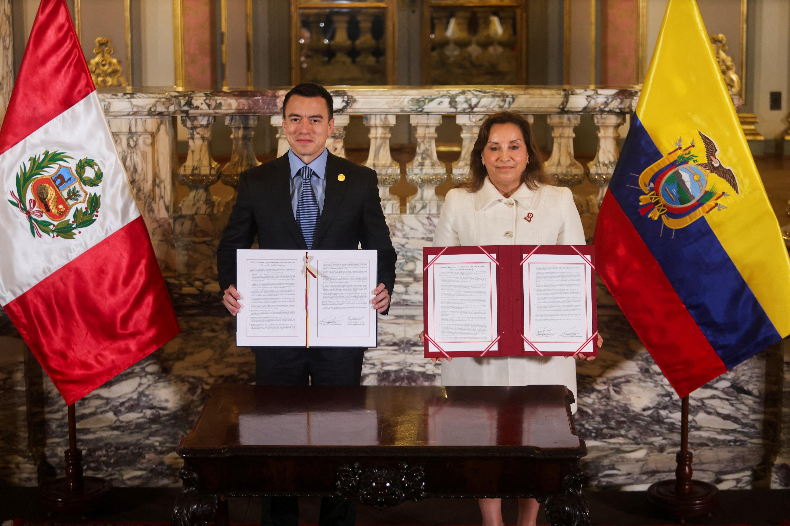 LIMA, July 4 (Reuters) - The presidents of Peru and Ecuador pledged to join efforts to fight transnational organized crime and also discussed new possibilities for oil processing, Peruvian Dina Boluarte said on Thursday. Boluarte made the remarks in Lima after meeting with her Ecuadorian counterpart, Daniel Noboa, in which the two signed a joint declaration between the Latin American countries. "We have managed to define commitments with collaborative approaches to confront transnational organized crime," Boluarte said, specifying that her and Noboa had talked about cooperation on migration and illegal mining. On oil integration, the leaders addressed "the possibility of processing Ecuadorian oil in the Talara refinery," said Boluarte, without further details in a speech accompanied by Noboa. The Talara refinery belongs to state-run Petroperu, Peru's cash-strapped oil firm that is struggling under multi-million debts and has little liquidity to maintain its operations. Sign up here. https://www.reuters.com/world/americas/peru-ecuador-join-efforts-security-oil-integration-2024-07-04/