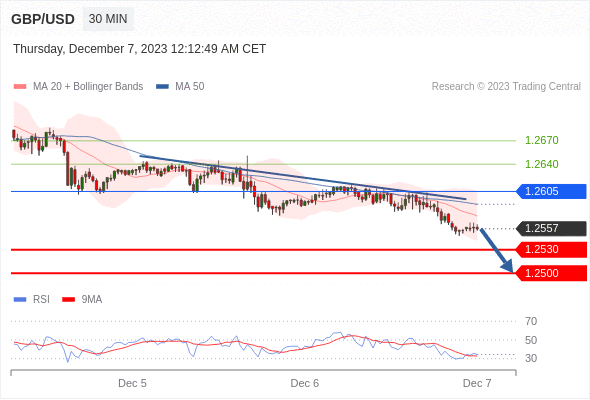 Short positions below 1.2605 with targets at 1.2530 & 1.2500 in extension.
