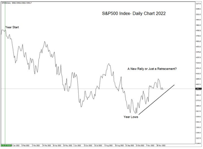 In the past few months, stock markets have staged a massive comeback recouping some of their yearly losses, driven by optimism that inflation has peaked and started cooling. The recent loosening of China’s strict zero-covid policy has also helped fuel the bullish investor sentiment. However, investors should not get overly excited as the rally could be a minor retracement to the upside before another significant drop. The cautious approach is based on an analysis of the leading US economic indicators, most of which point to a recession next year. While other metrics, such as company valuations and earnings, remain optimistic, they do not reflect the increasingly weak macroeconomic conditions.