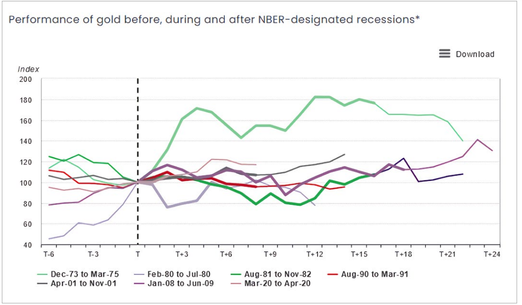 Suppose the US economic downturn worsens and a recession emerges during the same period. In that case, the safe-haven role of precious metals could cushion investors from the pressure of high interest rates and support a bottom in gold prices. According to the World Gold Council (WGC), gold has generated positive returns in five of the last seven recessions. There is one caveat: a “soft landing” of the economy will be less supportive of gold prices.