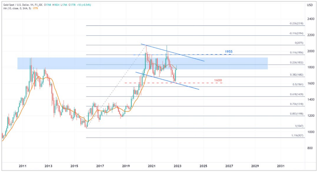 On the contrary, we believe the dollar will likely remain the safe-haven asset of choice as the global economy faces significant downward pressure. The Fed has already predicted in its December minutes that interest rates will rise to the terminal rate and that the high rates will linger much longer. The overall rebound of gold prices will still be subject to headwinds before the Fed decides to reverse the direction of its policies. Under these circumstances, there is a chance that gold prices may head towards the critical support at $1,600. There is a lower support at $1,561, and the support zone at the lower end of the descending channel will be tested again.