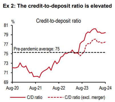 Why is this even a problem? An elevated credit-to-deposit ratio tends to autocorrect over time. And, already, there are signs of credit growth softening, leading to some moderation in this ratio.