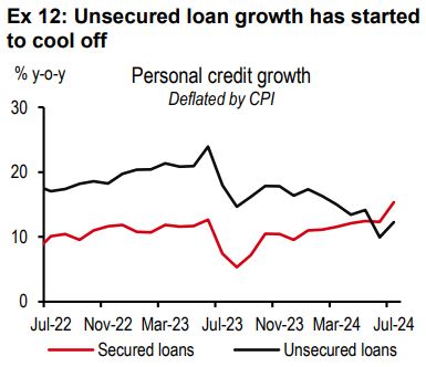 Some short-term interventions have helped and could continue to help. For instance, higher risk weights since November 2023 have lowered the pace of unsecured loan growth already.