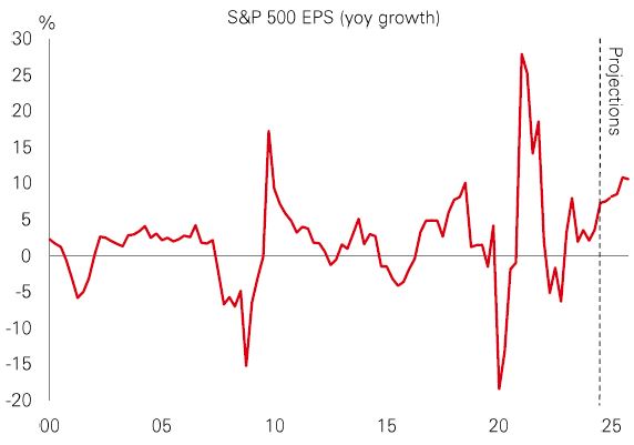 From here, profit growth expectations remain high into 2025. But against a backdrop of policy uncertainty and a cooling economy, any weakness could lead to heightened volatility.