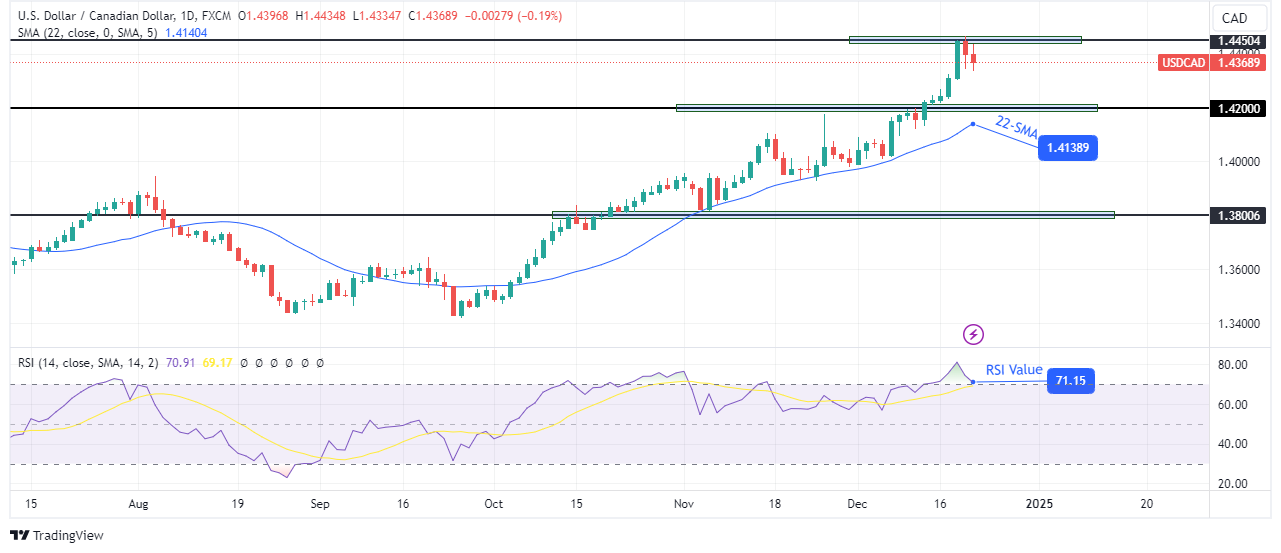 In the new year, USD/CAD might continue its uptrend after a pullback to retest the 1.4200 key level or the 22-SMA support.