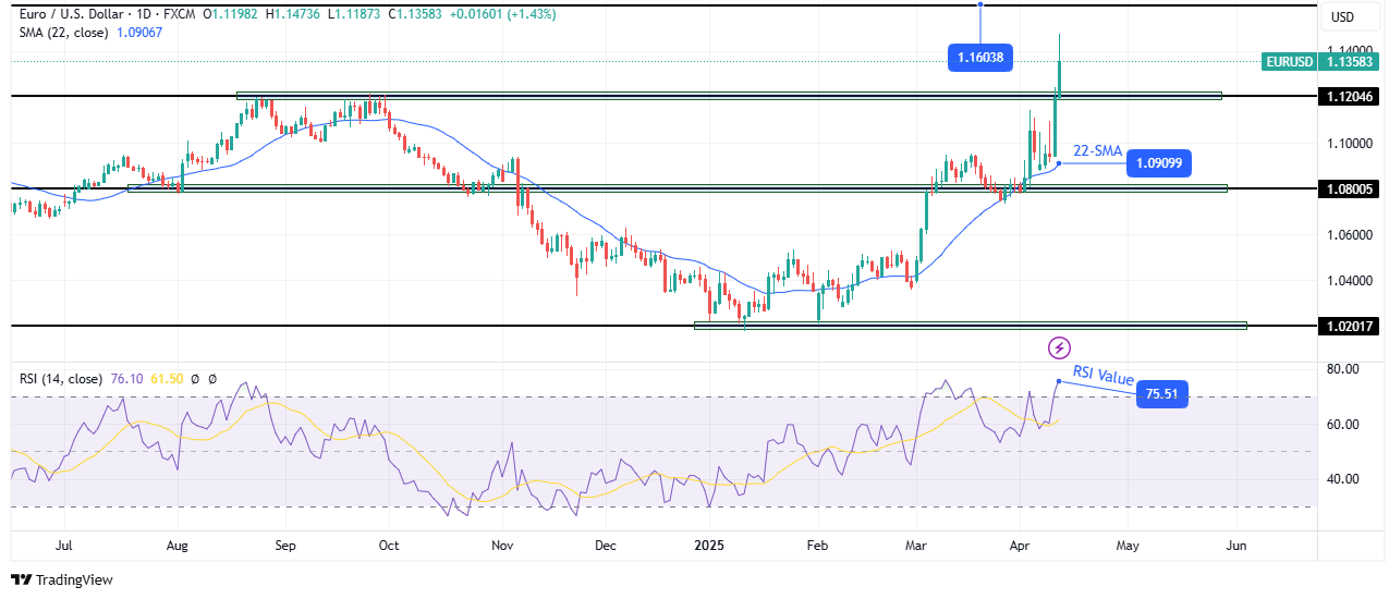The EUR/USD pair had a bullish week as the dollar collapsed amid economic uncertainty. Meanwhile, the euro rallied together with safe-haven currencies like the yen. Market volatility shot up after Trump implemented reciprocal tariffs on Wednesday. The move caused panic as investors worried about the global economy.