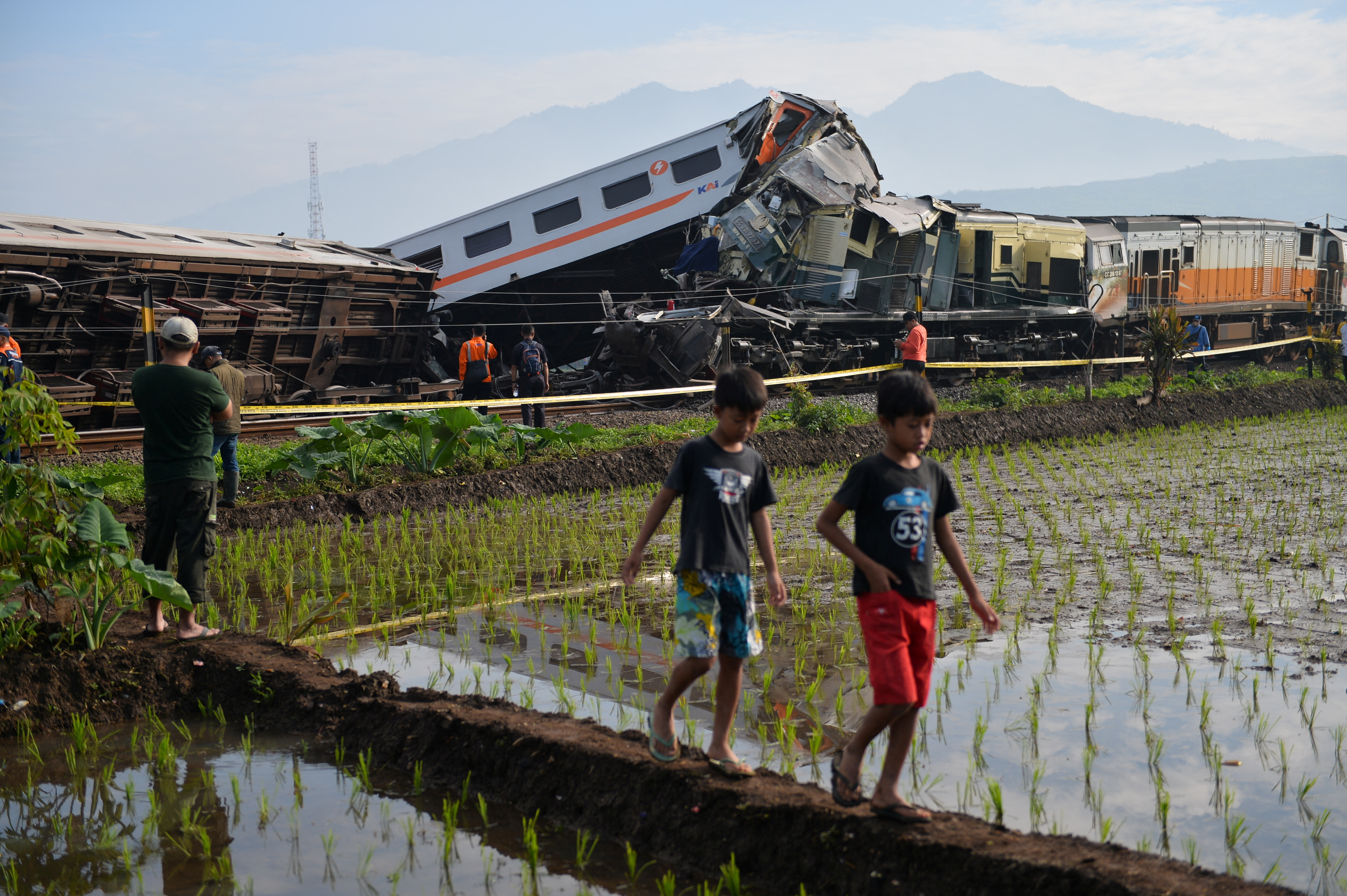 The cause of the crash not immediately clear, but train operator PT KAI and the provincial government have said they will investigate, along with transport safety officials.