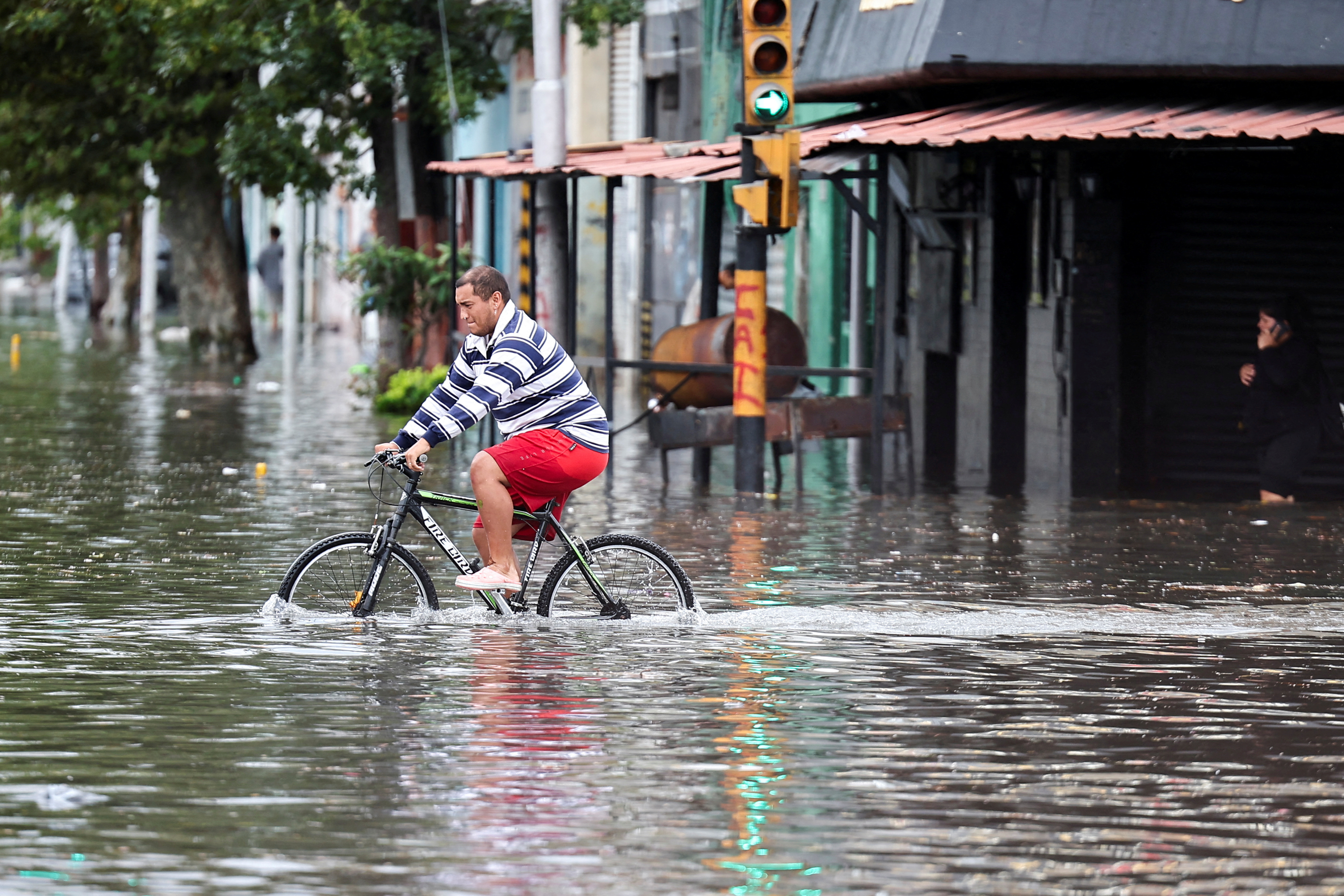 The heavy rains also caused flooding in parts of the city of Buenos Aires, with residents wading through up to waist-high waters and storms bringing "a lightning strike every second," meteorologists said.