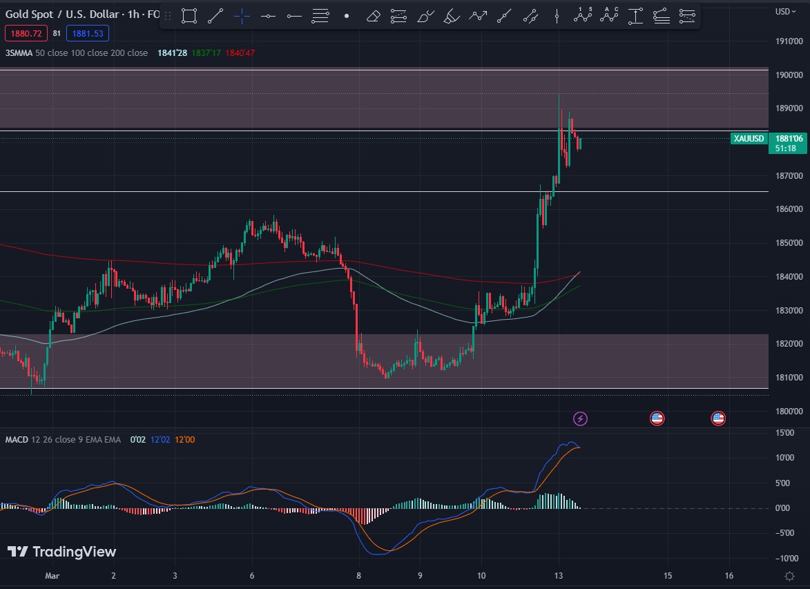 黄金今日走势图 13/3/2023