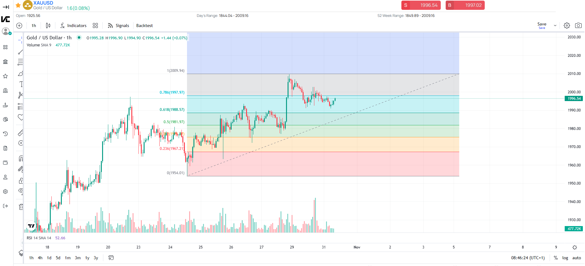 Based on the FIBONACCI RETRACEMENT strategy, a BUY signal was found at 1,995.33 on the 1-HOUR chart. Traders may monitor for BUY opportunities at this price level.